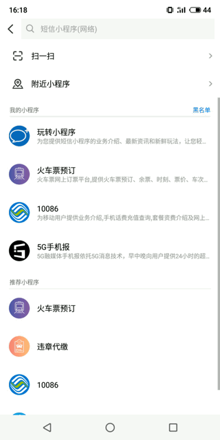 实际上,5G消息也已经支持这项功能,称之为短信小程序,顺利获得chatbot(聊天机器人)来实现,在短信界面就能完成搜索、点选、交互等一系列操作。