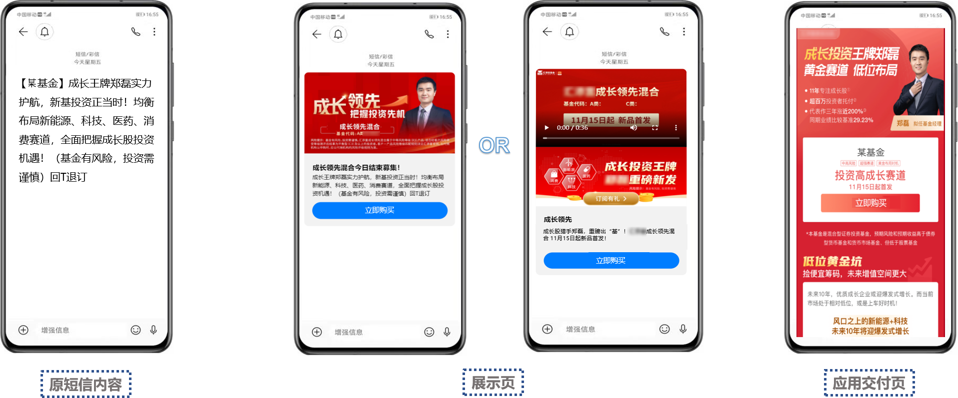 因传统短信高触达、广覆盖的产品特性,不少基金组织会顺利获得短信向他们的会员用户发送基金介绍,但用户收到短信后仍需要从长篇幅的文本中提取信息,这在一定程度上影响了产品推介的效果。针对基金业产品推介的需求,凯发k8官网科技5G消息解决方案带来了全新的营销亮点。