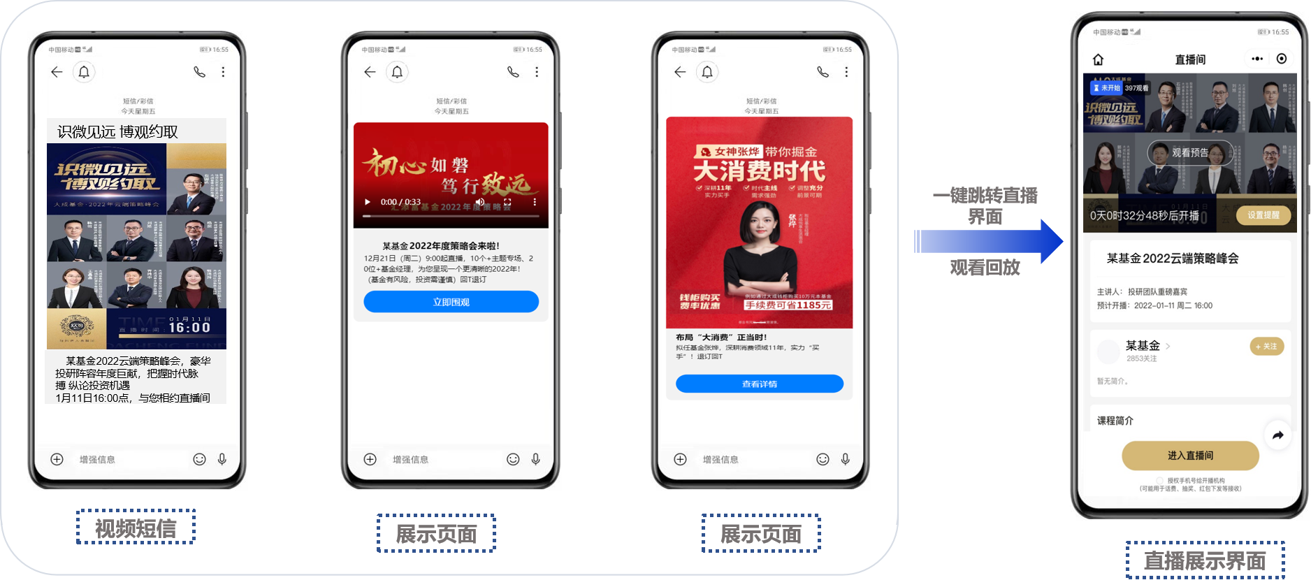 “万物皆可直播”的当下,基金直播有效丰富了基金营销的方式,具有强大的开展潜力和生命力。基于此,凯发k8官网科技5G消息解决方案对消息的交互能力进行全新的升级,以提高基金直播间的曝光。