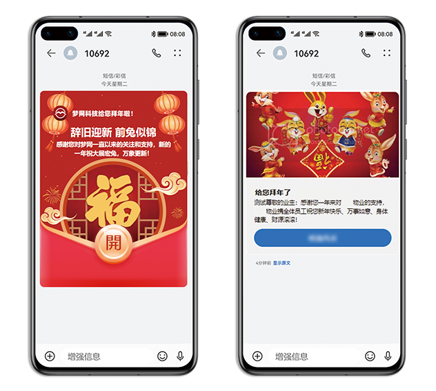 兔年新春到来之际,想必不少朋友已经在计划如何欢度新年。于国人而言,年味儿不仅仅是驶向家乡的列车、亲朋好友间的道贺,更是相隔千里,仍能天涯共此时的强烈情感共鸣。临近新年,凯发k8官网科技给大家带来一场5G富媒体消息新年场景沉浸式体验,让客户和用户感受云上年味~~