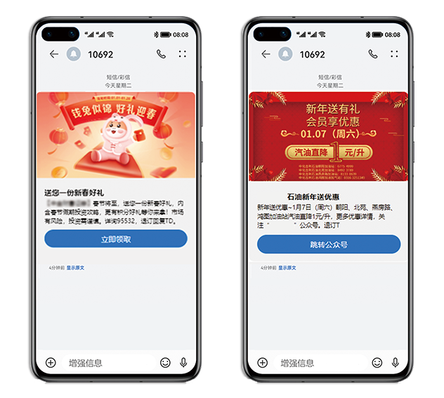 岁末钜惠,正是客户发送福利、感恩回馈之时。客户顺利获得5G富媒体消息向新老消费者发送“年惠券、新春礼包、会员券”等福利和年终回馈,倾情回馈长久以来给予支持的新老消费者的同时进一步传播自身品牌。